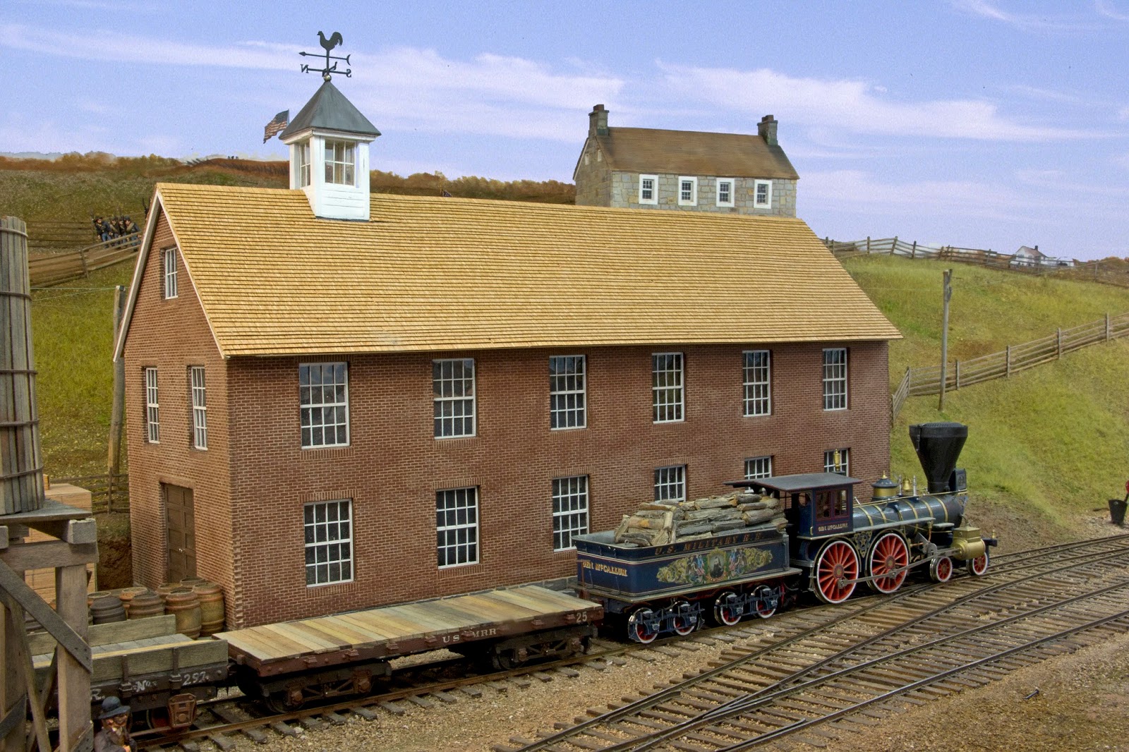 The Brooke scene is coming together. Next decision, should I paint a sign on the side of the tobacco prizery (warehouse/factory)? I am thinking something like this would be cool.