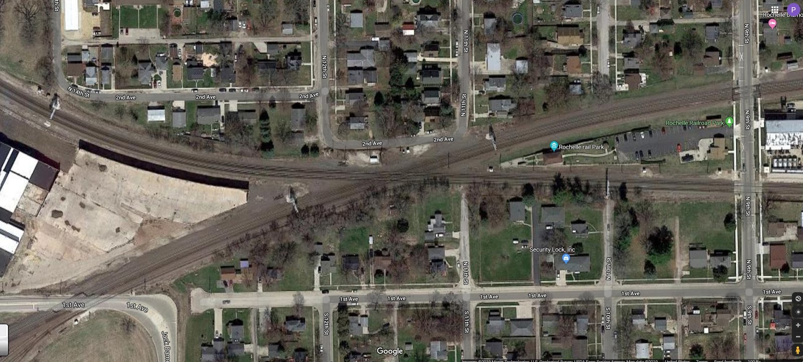 Work is progressing nicely in Rochelle. Below is an update video and a google maps view of the prototype. In order for it to fit in the layout space available I rotated the crossing and tracks about 60 degrees clockwise.